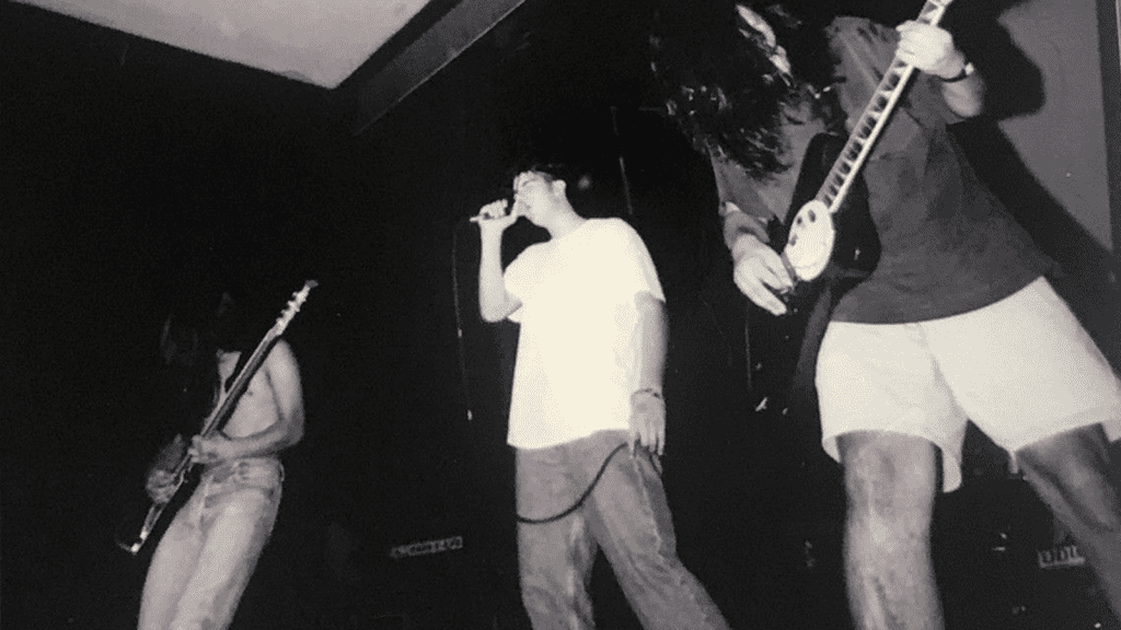 Back then, the trio were just making noise: “Stephen [Carpenter, guitarist] lived in the neighborhood – he was 18, a couple of years older than us. He’d ride around on his bike, and one day we were jamming out and Stephen must have heard us ’cos he poked his nose through the window and invited us to come jam with him at his house.