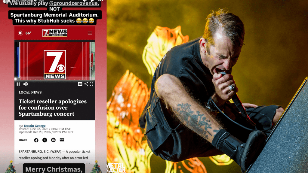 Lamb Of God last performed live in November, making the supposed December 20 “show” an immediate red flag for longtime fans. Frontman Randy Blythe addressed the mix-up with humor on his Instagram story, writing: “We usually play @groundzerovenue NOT Spartanburg Memorial Auditorium. This why StubHub sucks. Merry Christmas, Spartanburg.”